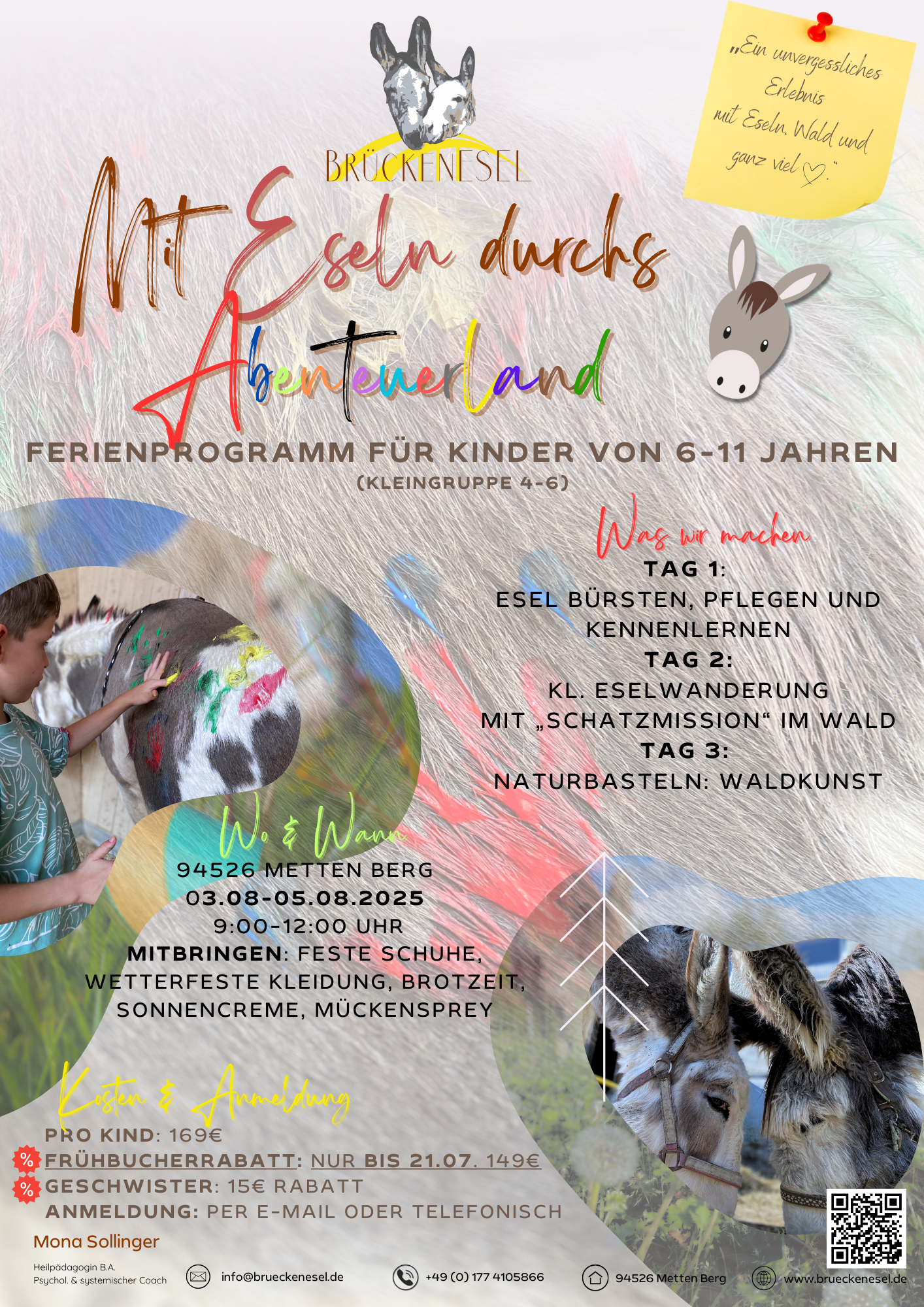 Genieße eine magische Zeit mit den Eseln und entdecke eine Welt voller Fantasie, Achtsamkeit, Spaß und Kreativität.