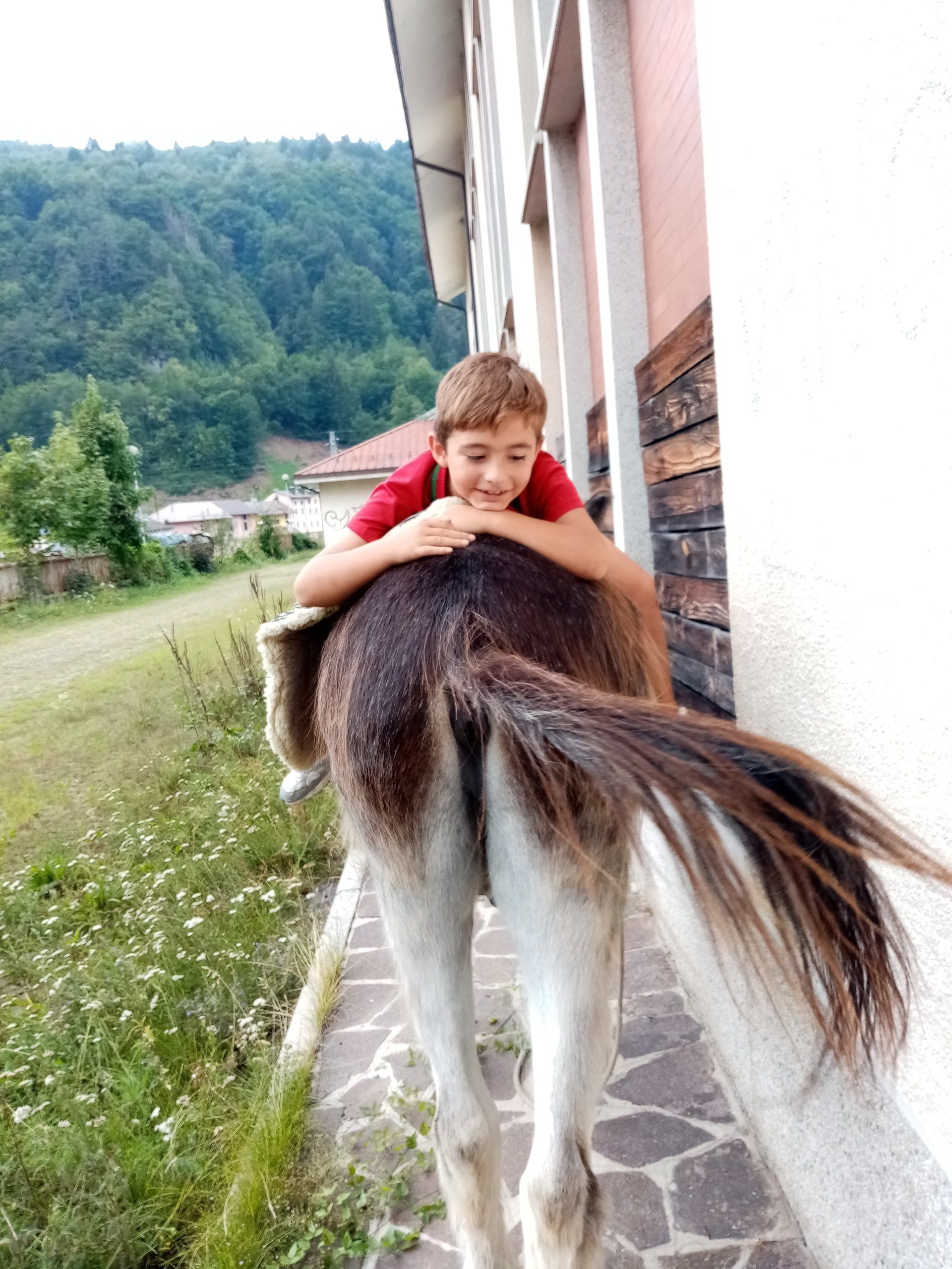 I tratti caratteriali dell'asino costituiscono la base fondamentale per il sostegno educativo speciale dei bambini. Gli asini come medium agiscono sempre in modo discreto e reagiscono in modo genuino al comportamento dei bambini. Anton e Lenchen sono molto attenti e pazienti con i bambini. La pressione per esibirsi e la necessità di avere successo sono loro estranee. Il loro comportamento coerente fornisce ai bambini sicurezza e ispira fiducia. In questo modo creiamo un'atmosfera rilassata in cui i bambini possono scoprire come interagire con gli asinelli e con se stessi con facilità giocosa. Accompagno tuo figlio nelle sue azioni in modo non giudicante e lo incoraggio a sviluppare lui stesso nuove soluzioni. Il percorso di apprendimento individuale è legato alla situazione e orientato alle risorse: acquisire saggezza dall'esperienza, crescere in situazioni non familiari, prendere decisioni autodeterminate e avvicinarsi ai propri obiettivi personali, lontano dalla pressione del tempo o da regole rigide.